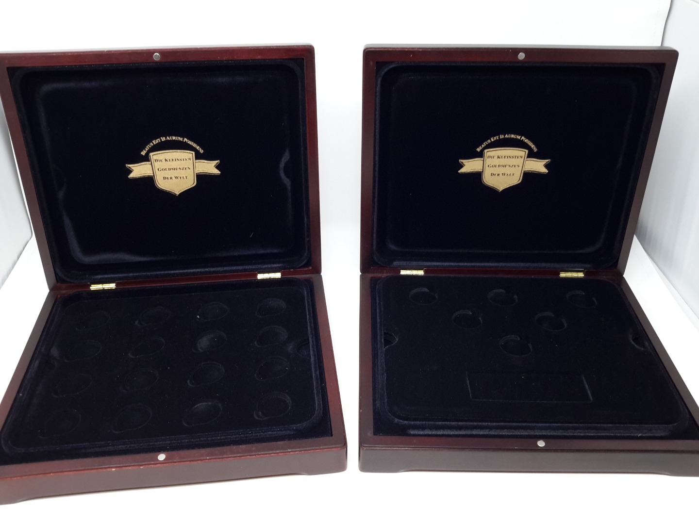 mit Gebrauchsspuren, zum Teil mit Kratzern Aussenmass: ca. 290 x 250 x 55 mm Für insgesamt 32 Münzen