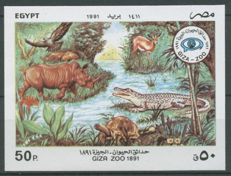Ägypten 1991 100 Jahre Giza-Zoo Nashorn Krokodil Block 52 postfrisch (C27270)