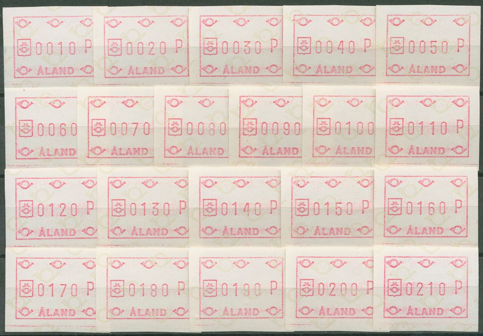 Aland 1984 Automatenmarken Posthörner Satz 21 Werte ATM 1 S postfrisch