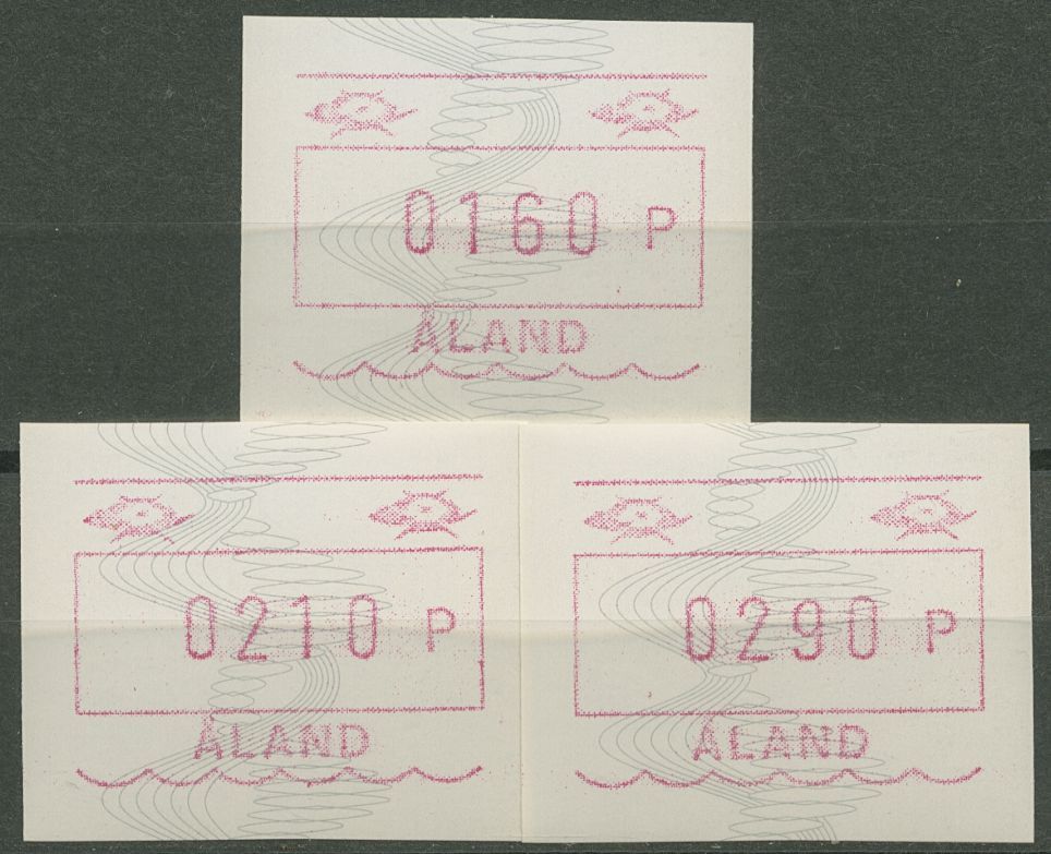 Aland 1990 ATM Wellenlinien/Spiralen Satz 3 Werte ATM Satz 4 c S3 postfrisch
