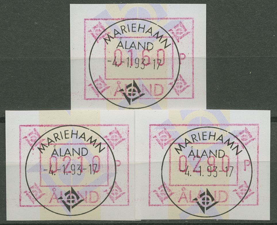 Aland 1993 ATM Satz 3 Werte mit WZ 1 ATM Satz 5 Yc S1 gestempelt