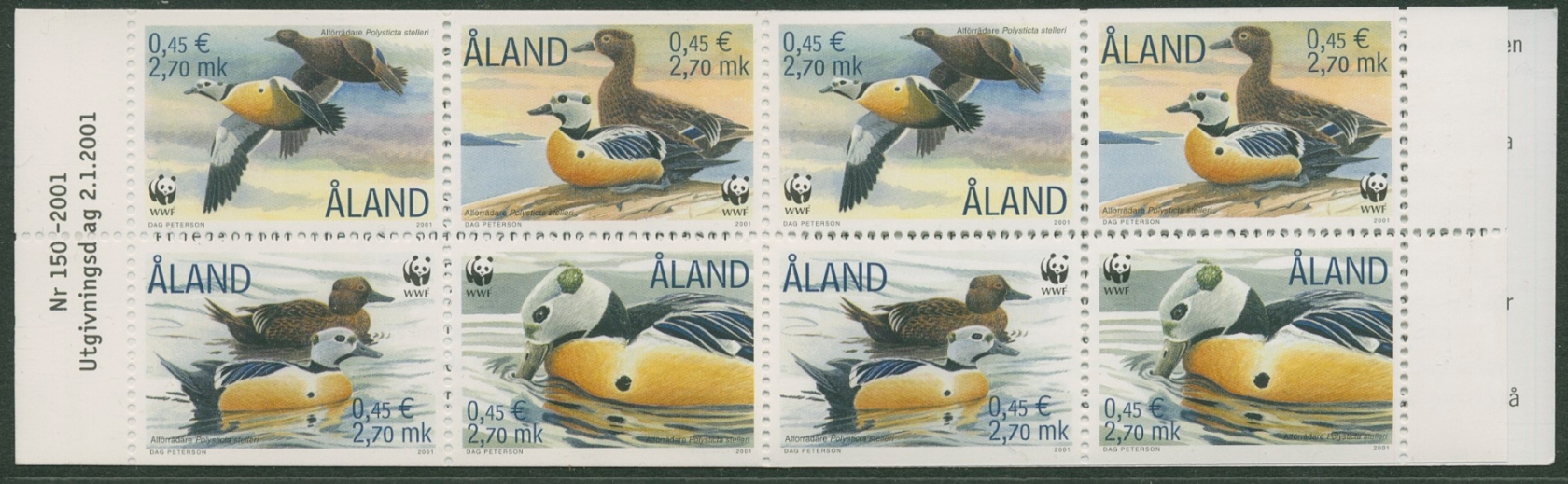 Aland 2001 WWF Naturschutz Scheckente Markenheftchen MH 9 postfrisch (C17479)