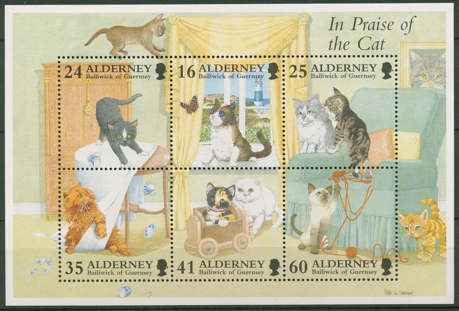 Alderney 1996 Katzen Block 2 postfrisch (C90370)