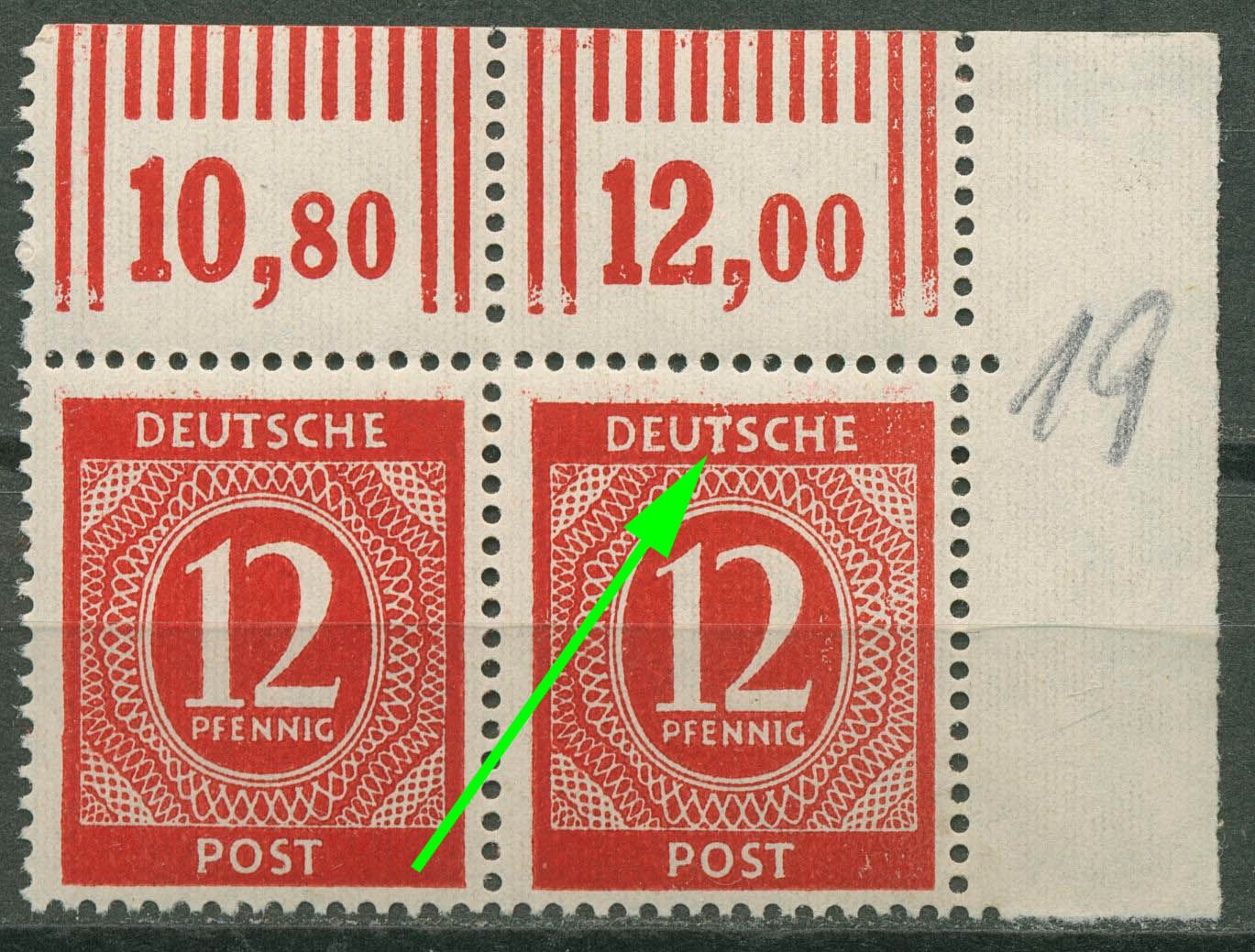 Plattenfehler 919 II: fettes T in DEUTSCHE, Paar mit Vergleichsstück