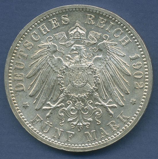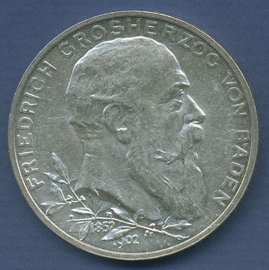Baden 5 Mark 1902, Regierungsjubiläum Großherzog Friedrichs, J 31 vz/st (m6551)