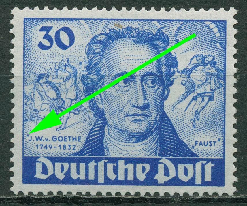 Plattenfehler 63 I: Farbpunkt links oben neben J von J. W. v. Goethe