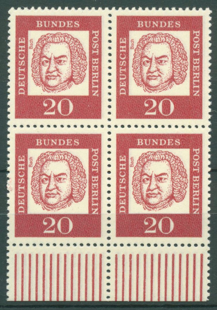 Berlin 1961 Bed. Deutsche: Bach mit Unterrand 204 W UR 4er-Block postfrisch
