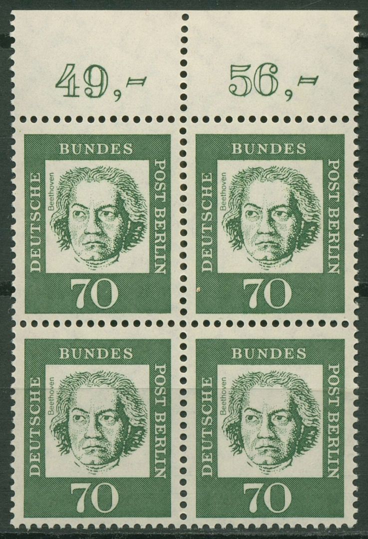 Berlin 1961 Bed. Deutsche: Beethoven mit Oberrand 210 4er-Block OR postfrisch