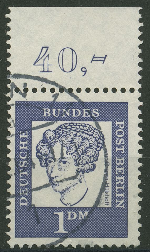 Berlin 1961 Bed. Deutsche: Droste-Hülshoff mit Oberrand 212 OR gestempelt