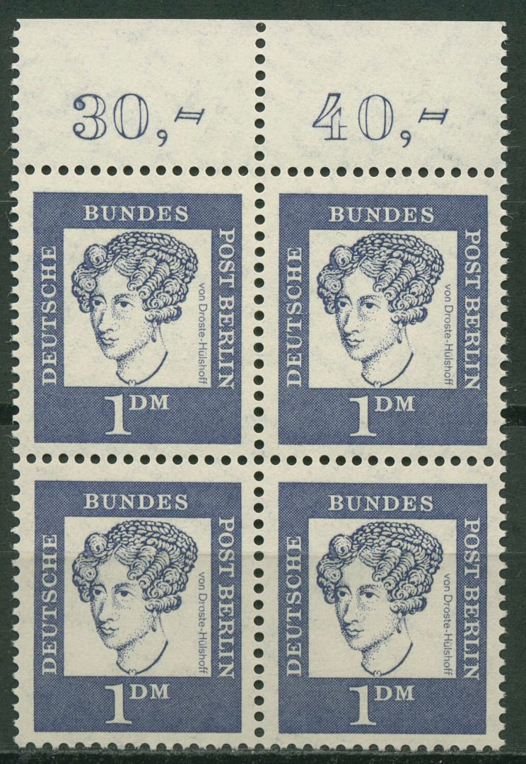 Berlin 1961 Bed. Deutsche: Droste-Hülshoff Oberrand 212 4er-Block OR postfrisch