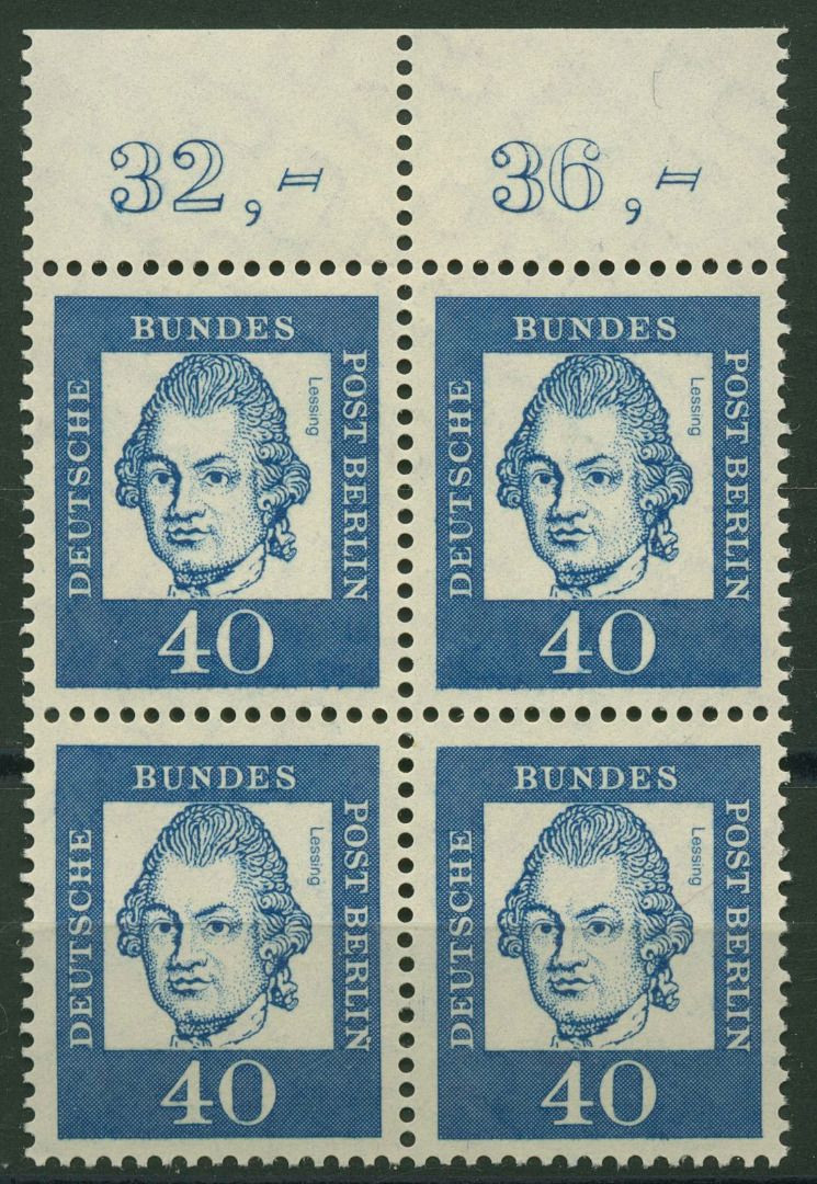 Berlin 1961 Bed. Deutsche: Lessing mit Oberrand 207 4er-Block OR postfrisch