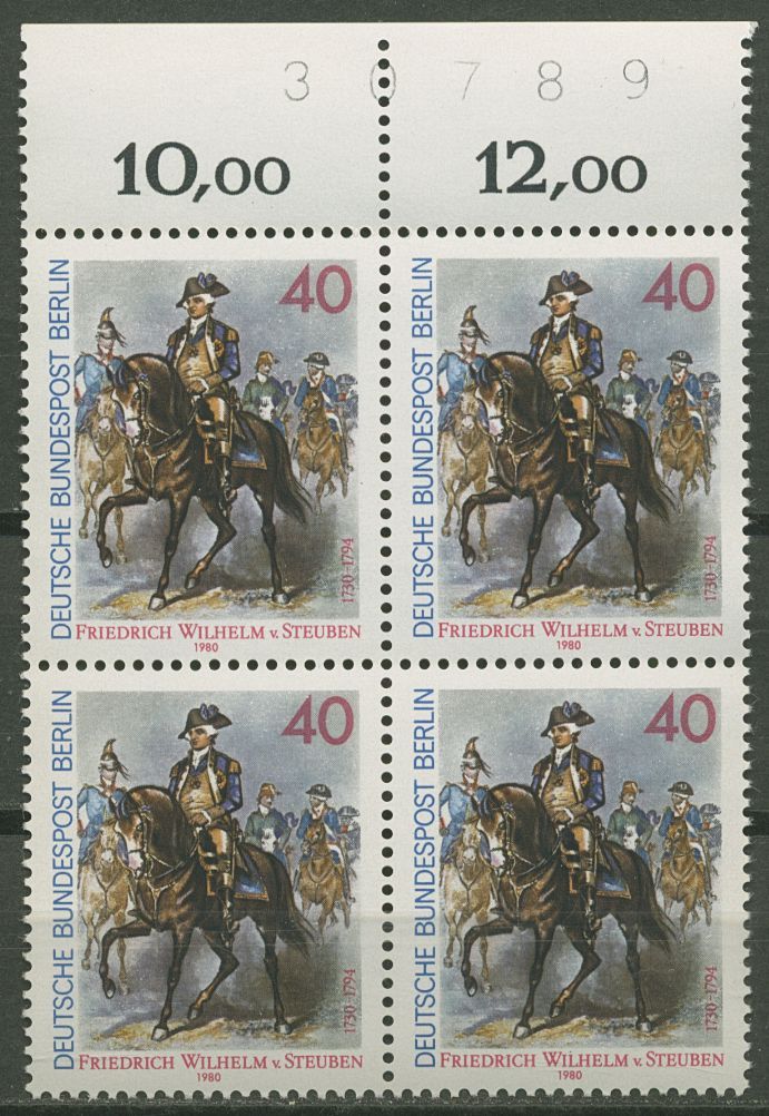 Berlin 1980 Friedrich Wilhelm von Steuben 628 4er-Block Bogen-Nr. postfrisch