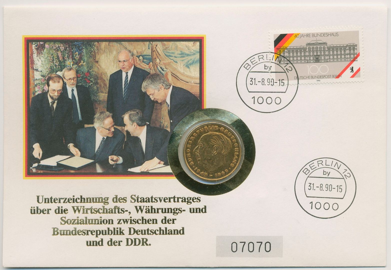 Berlin 1990 Staatsvertrag zwischen BRD und DDR Numisbrief 2 DM vergoldet (N715)