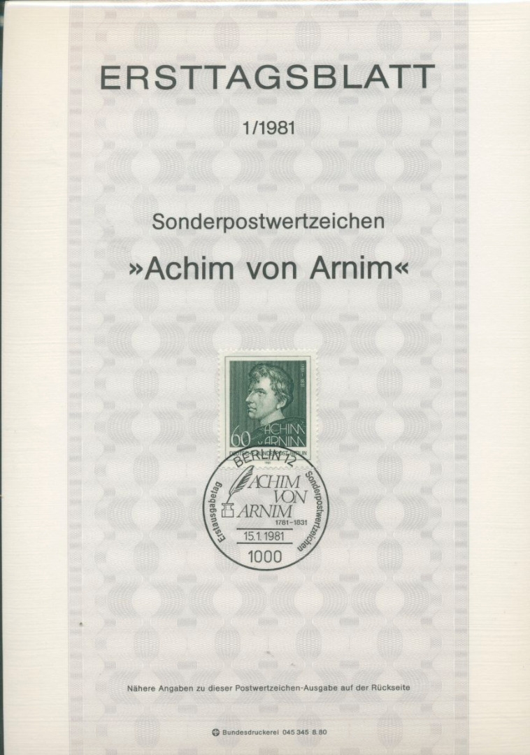 Berlin Jahrgang 1981 Ersttagsblätter komplett