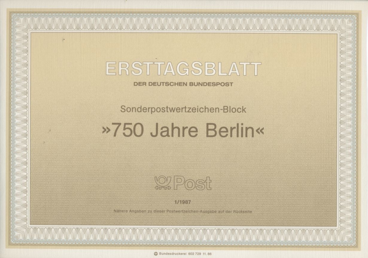 Berlin Jahrgang 1987 Ersttagsblätter komplett