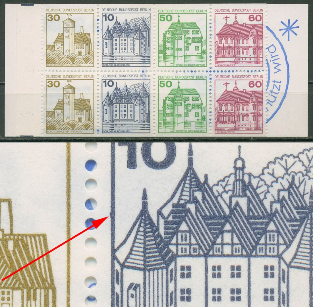 Plattenfehler MH 12 ca I PF VII: Verdickung im linken Rahmen, Feld 2