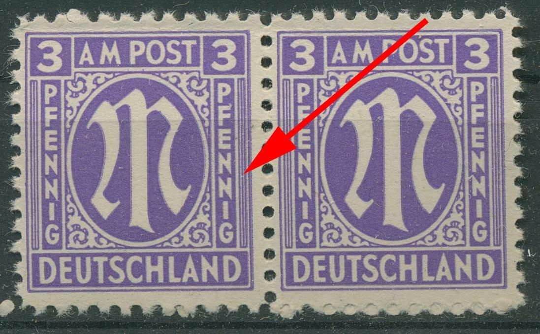 Bizone 1945 Am. Druck mit Plattenfehler 1 x f 57, Papier x postfrisch