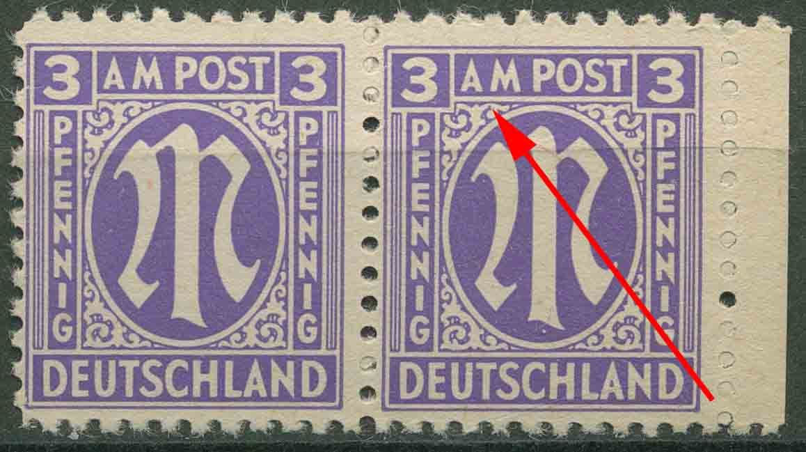 Bizone 1945 Am. Druck mit Plattenfehler 1 z f 30, Papier z postfrisch