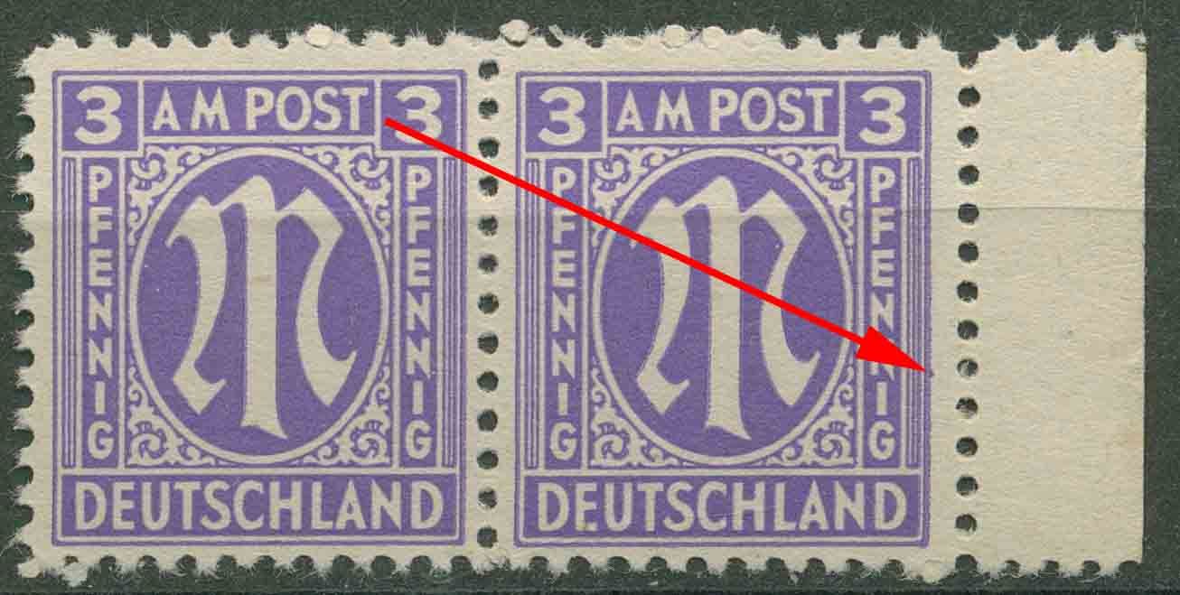 Bizone 1945 Am. Druck mit Plattenfehler 1 z f 40 B, Papier z postfrisch