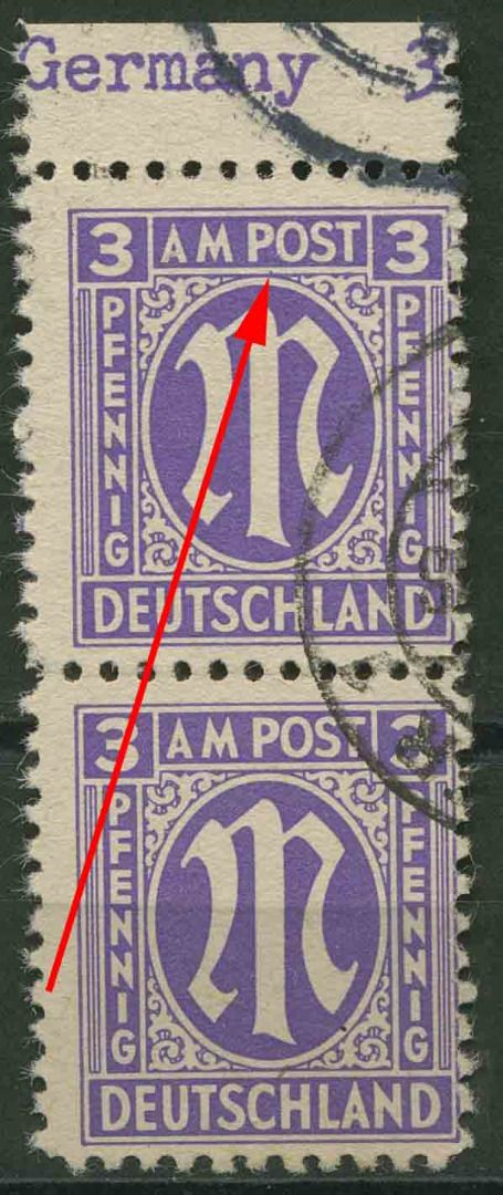 Bizone 1945 Am. Druck mit Plattenfehler 1 z f 5, Papier z gestempelt
