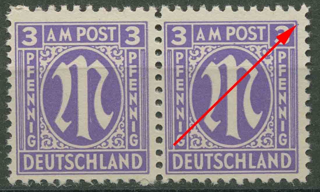 Plattenfehler 1 z f 75 A: Farbfleck neben äußerer Umrandungslinie an oberer rechter Markenecke