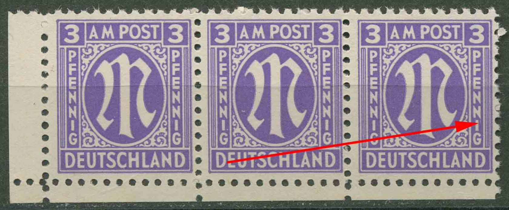 Bizone 1945 Am. Druck mit Plattenfehler 1 z f 93, Papier z postfrisch