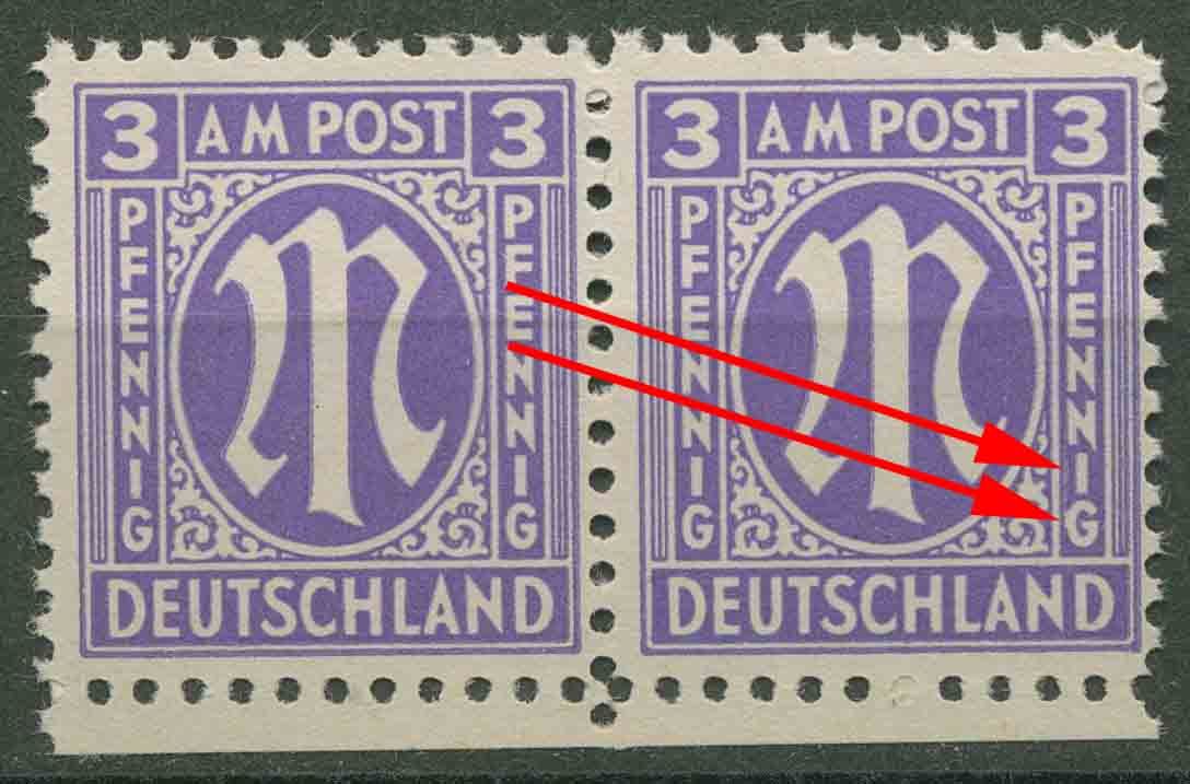 Bizone 1945 Amerik. Druck mit Plattenfehler 1 z VII, Papier z postfrisch