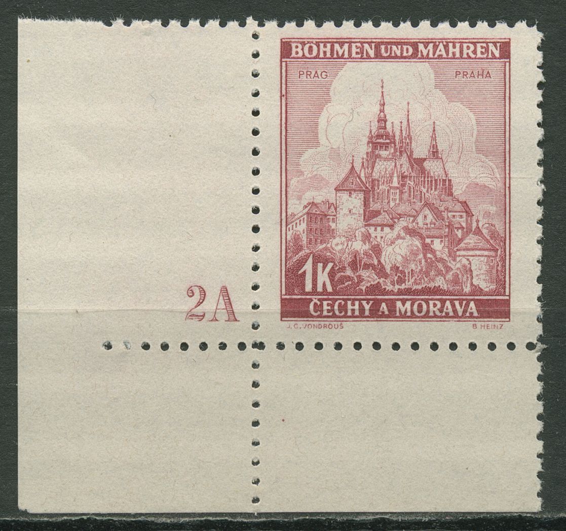 Böhmen & Mähren 1939 Ecke m. Plattennummer 100er-Bogen 28 Pl.-Nr. 2A postfrisch