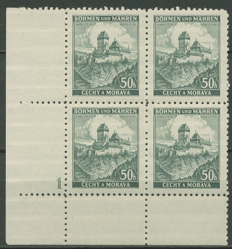 Böhmen & Mähren 1939 Eckrand-4er-Block 100er-Bogen 26 Pl.-Nr. 1 postfrisch