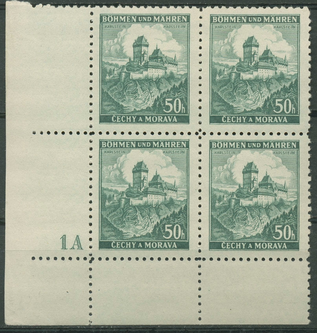 Böhmen & Mähren 1939 Eckrand-4er-Block 100er-Bogen 26 Pl.-Nr. 1A postfrisch
