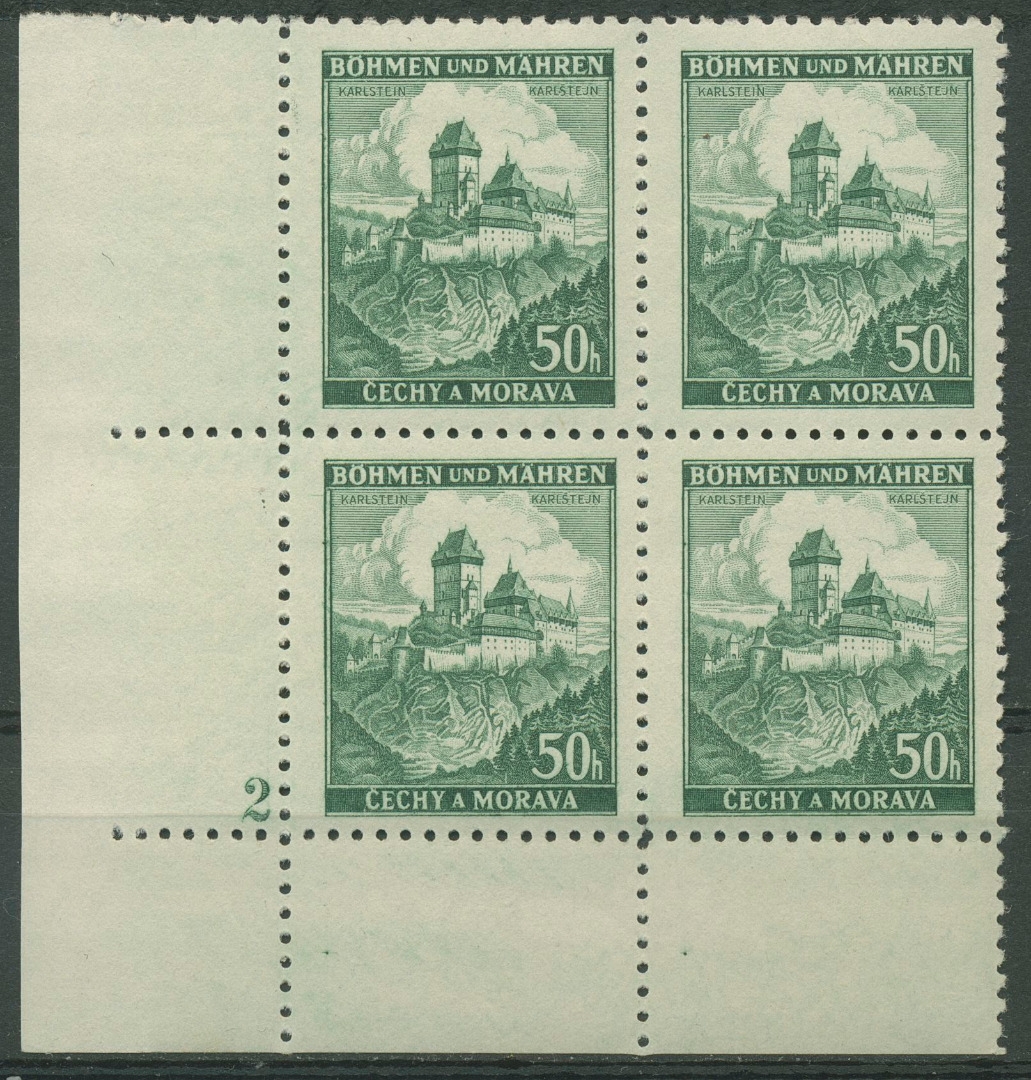 Böhmen & Mähren 1939 Eckrand-4er-Block 100er-Bogen 26 Pl.-Nr. 2 postfrisch