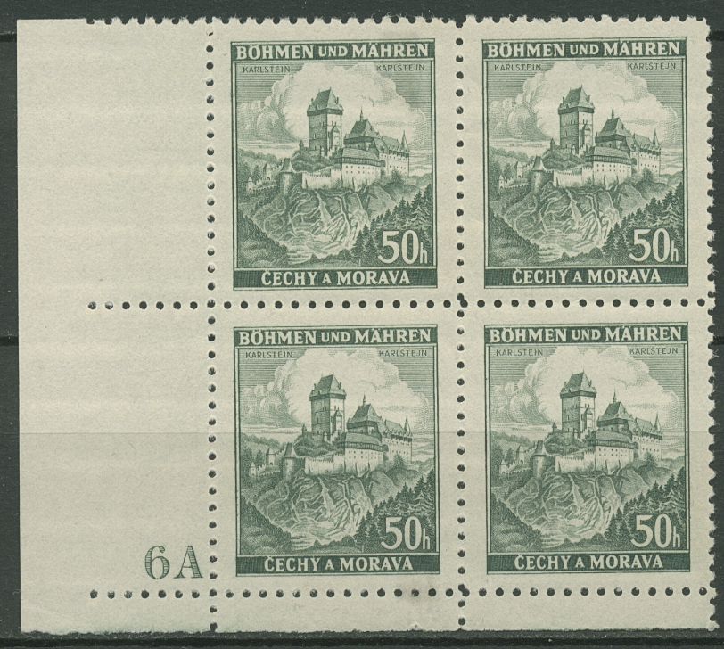 Böhmen & Mähren 1939 Eckrand-4er-Block 50er-Bogen 26 Pl.-Nr. 6A postfrisch