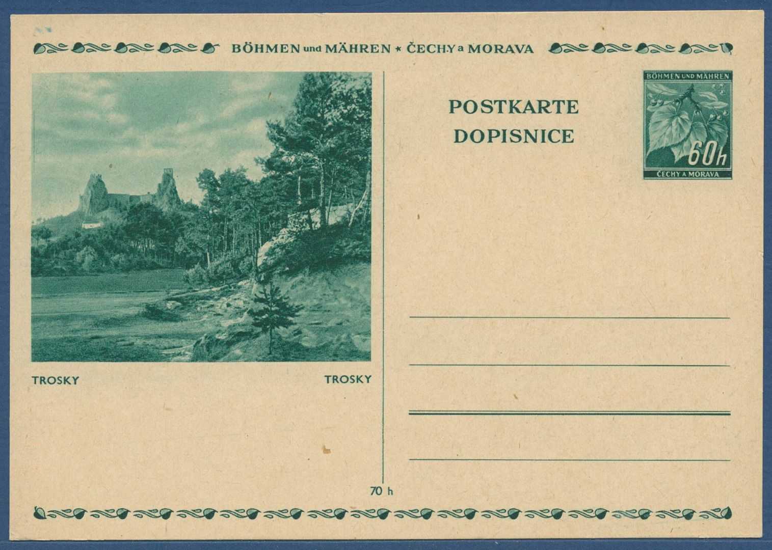 Böhmen und Mähren 1939 Bildpostkarte Trosky P 6 /012 ungebraucht (X40627)