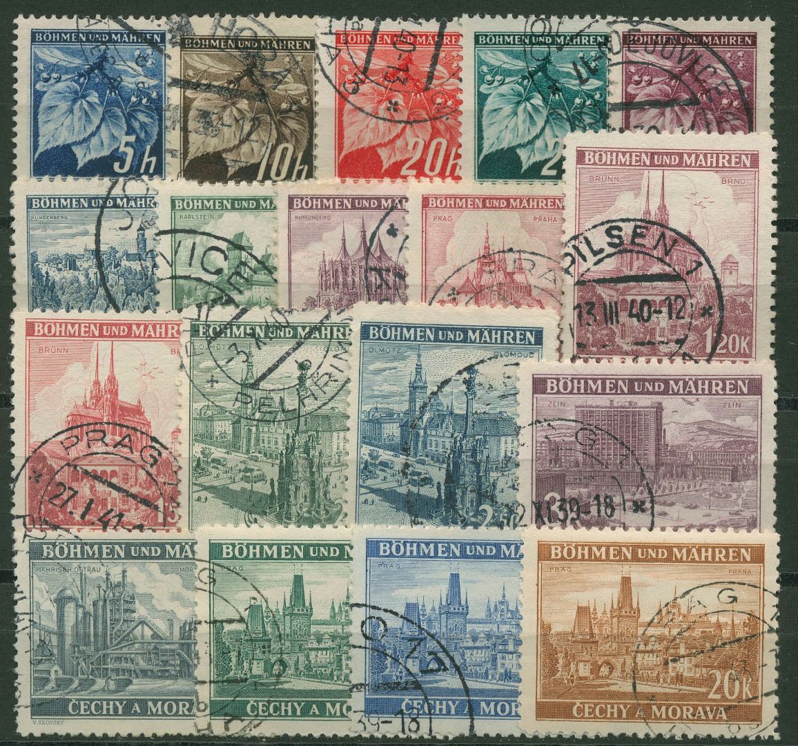 Böhmen und Mähren 1939 Lindenzweig und Landschaften 20/37 gestempelt