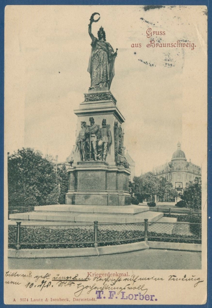 Braunschweig Kriegerdenkmal, gelaufen 1902 (AK2269)