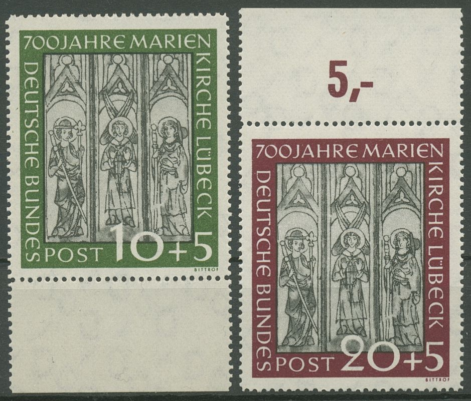 Bund 1951 700 Jahre Marienkirche Lübeck 139/40 Randstücke postfrisch geprüft