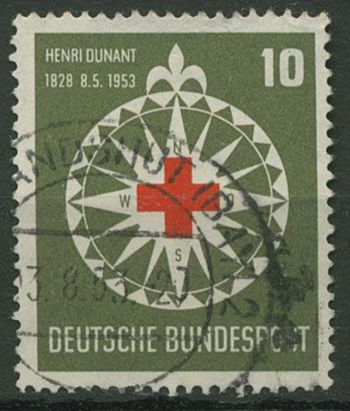 Bund 1953 125. Geburtstag von Henri Dunant, Rotes Kreuz 164 gestempelt