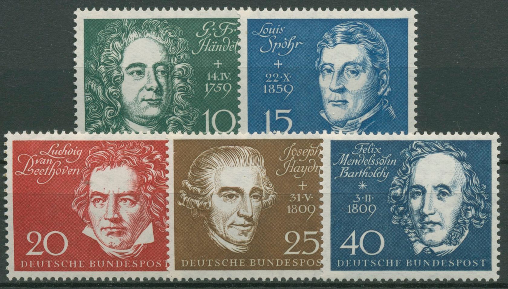 Bund 1959 Beethovenhalle Komponisten 315/19 Blockeinzelmarken postfrisch