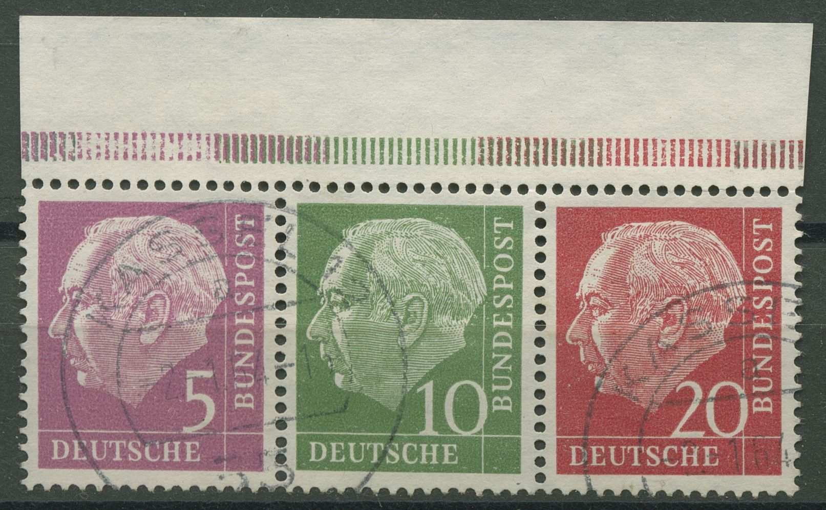 Bund 1960 Heuss/Ziffer (WZ lg.) Zusammendruck Oberrand W 20 YII OR TOP-Stempel