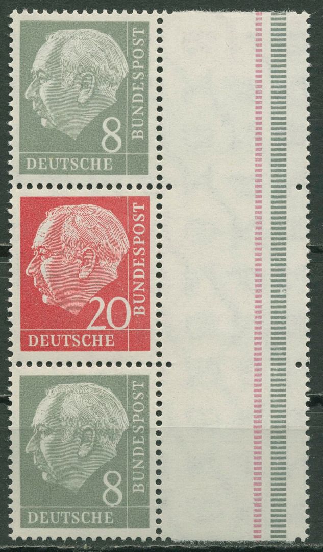 Bund 1960 Heuss/Ziffer (WZ lg.) Zusammendruck S 50 YII mit Rand postfrisch