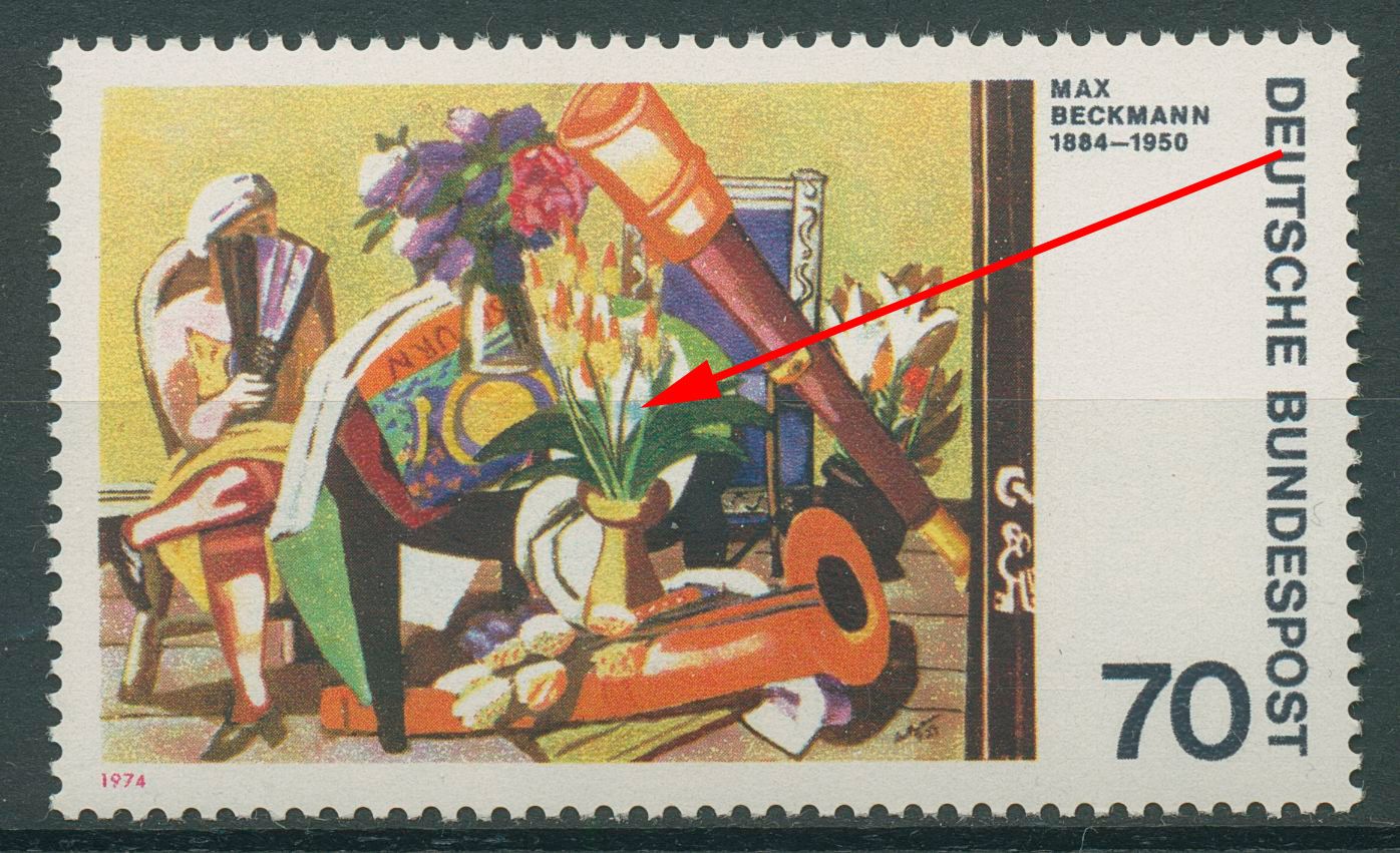 Plattenfehler 822 II: blauer Fleck zwischen Blumenstiel und Blättern
