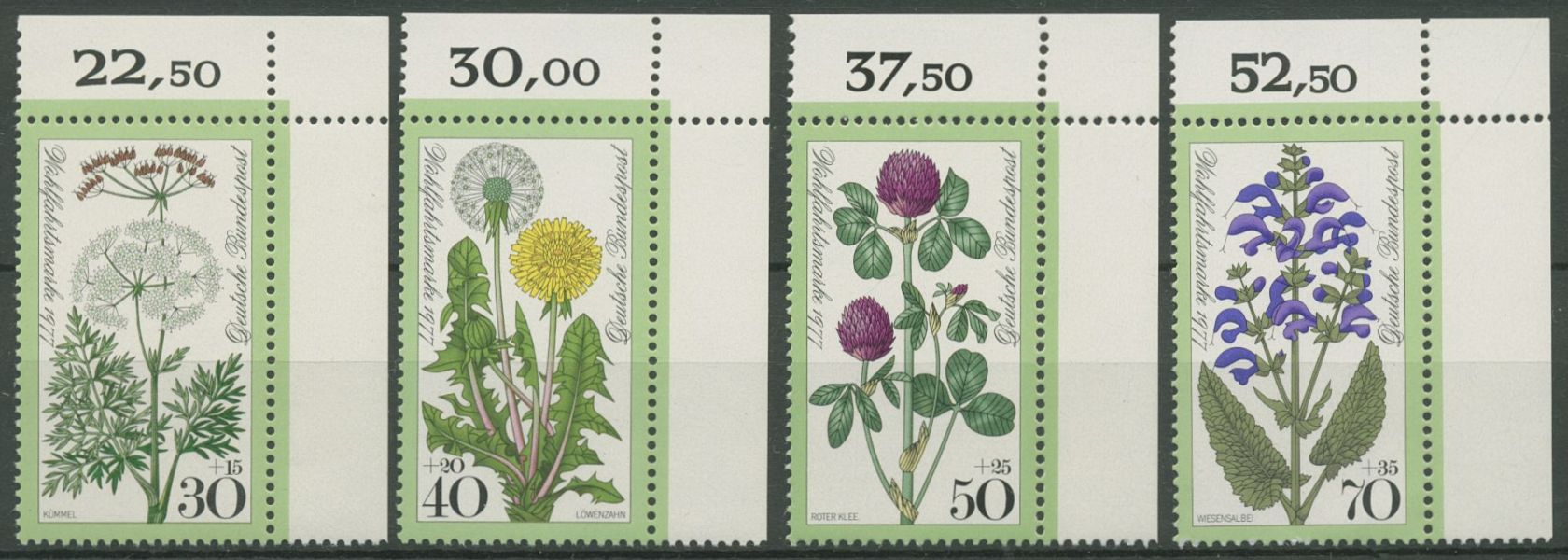 Bund 1977 Wohlfahrt: Wiesenblumen 949/52 Ecke 2 oben rechts postfrisch (E419)