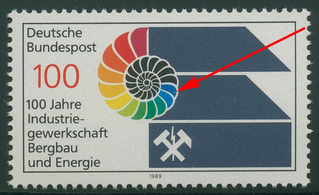 Plattenfehler 1436 f 14: Punkt im blauen Feld der Schnecke