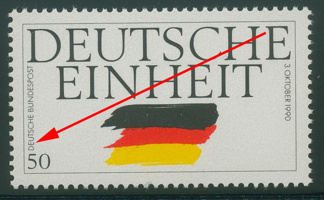 Plattenfehler 1477 I: schräger schwarzer Strich unter am ersten E in DEUTSCHE