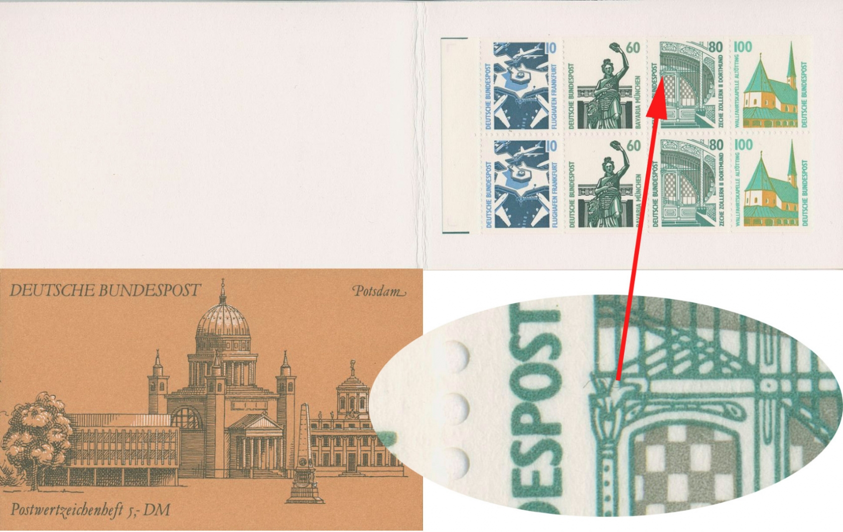 Bund 1991 Markenheftchen Sehenswürdigkeiten MH 26 b PF II mit Plattenfehler 1342 IV: gebrochene Eckverzierung (Feld 3) postfrisch