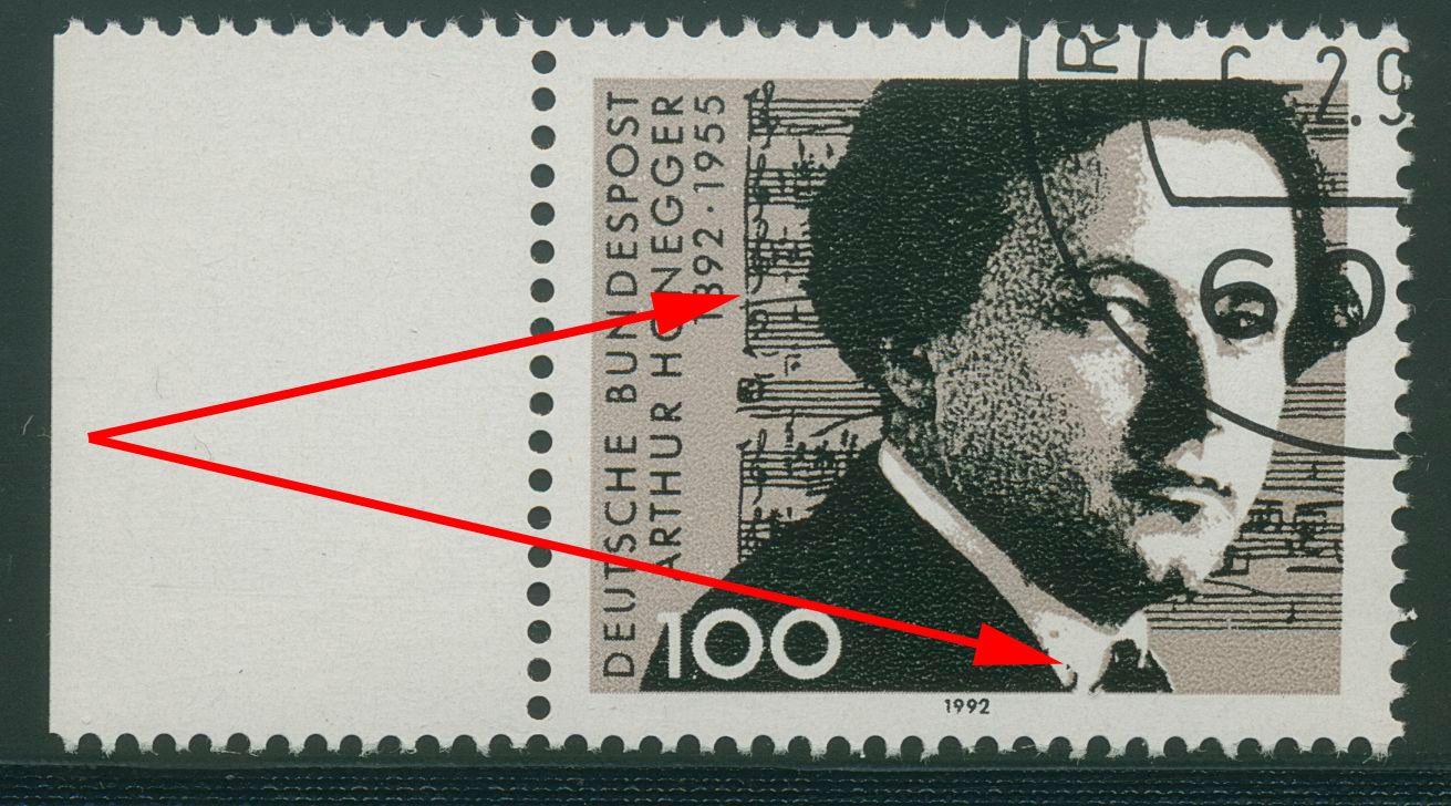Bund 1992 100. Geb. von Arthur Honegger mit Plattenfehler 1596 f 16 gestempelt