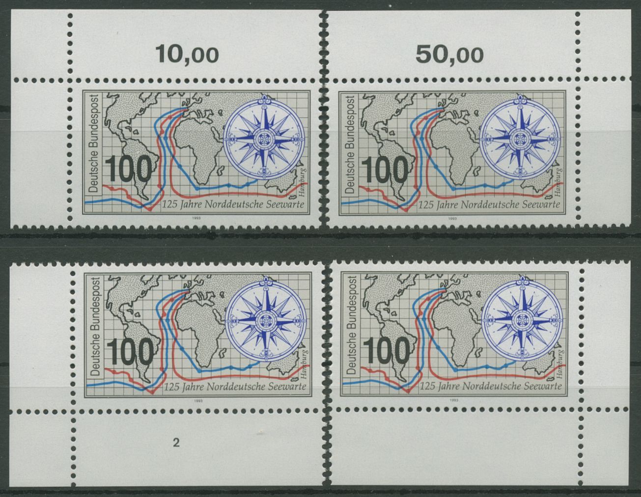 Bund 1993 Norddeutsche Seewarte Schifffahrt 1647 alle 4 Ecken postfrisch (E2078)