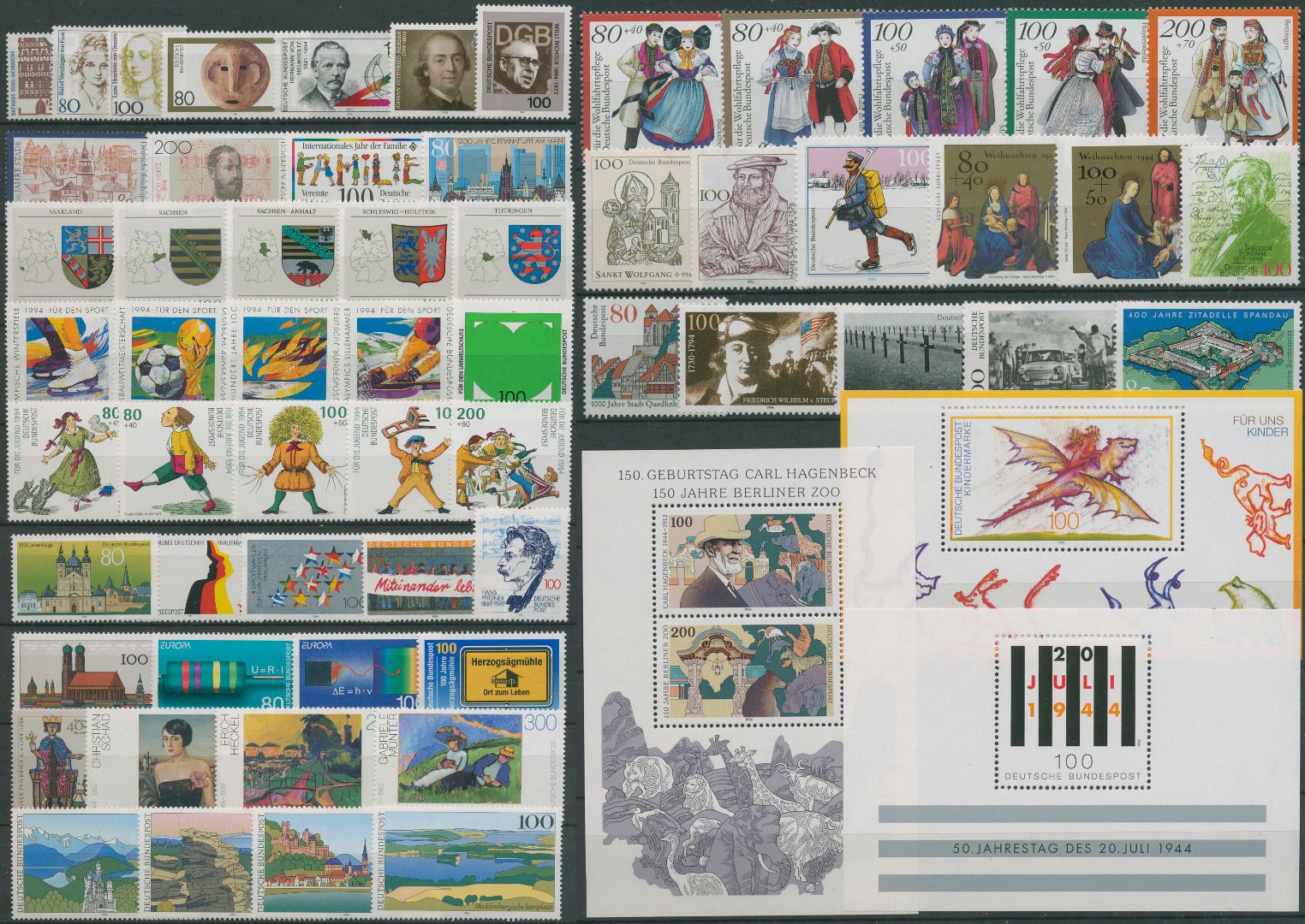 Bund 1994 Jahrgang komplett (1709/71, Block 28/30) postfrisch (SG98498)