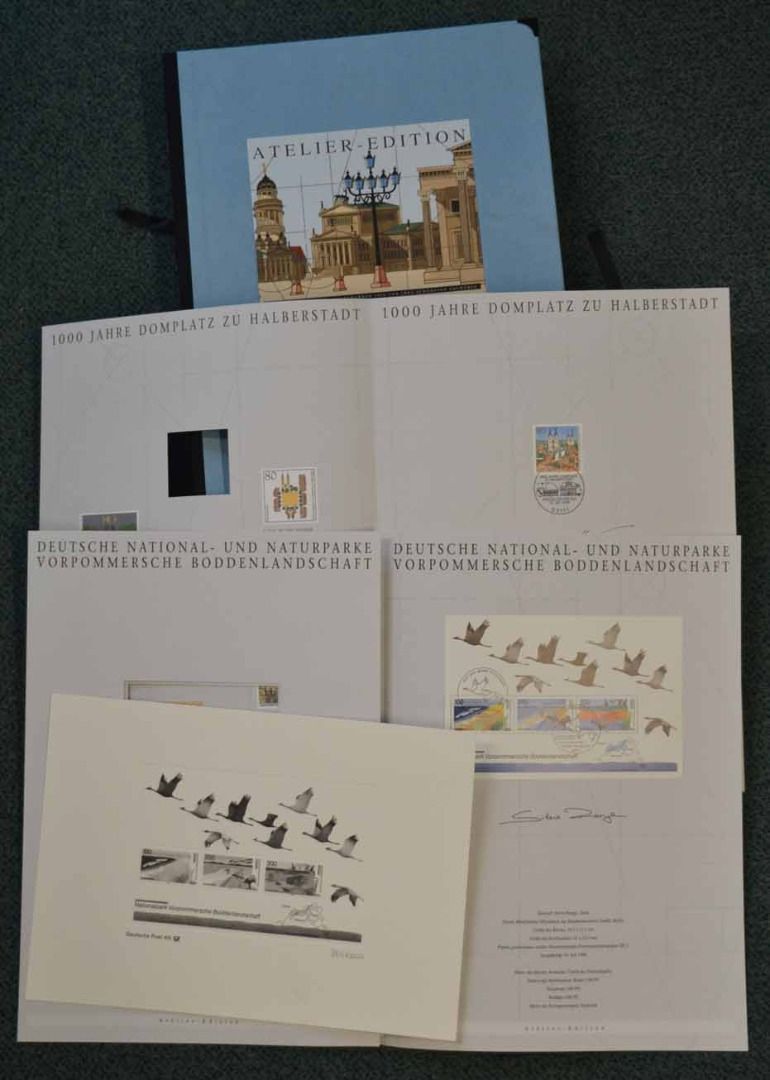 Bund 1996 Atelier-Edition Alle Sondermarken des Jahres auf Blättern mit Abbildungen der Entwürfe komplett mit Schwarzdruck in Luxuskassette (XXL8171)