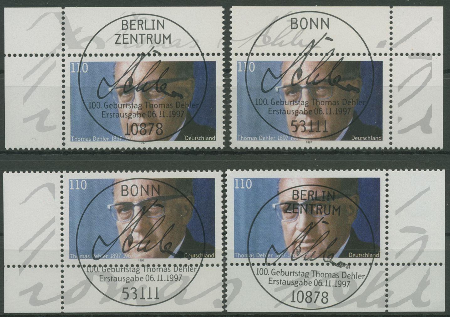 Bund 1997 Politiker Thomas Dehler 1963 alle 4 Ecken mit TOP-ESST (E2834)